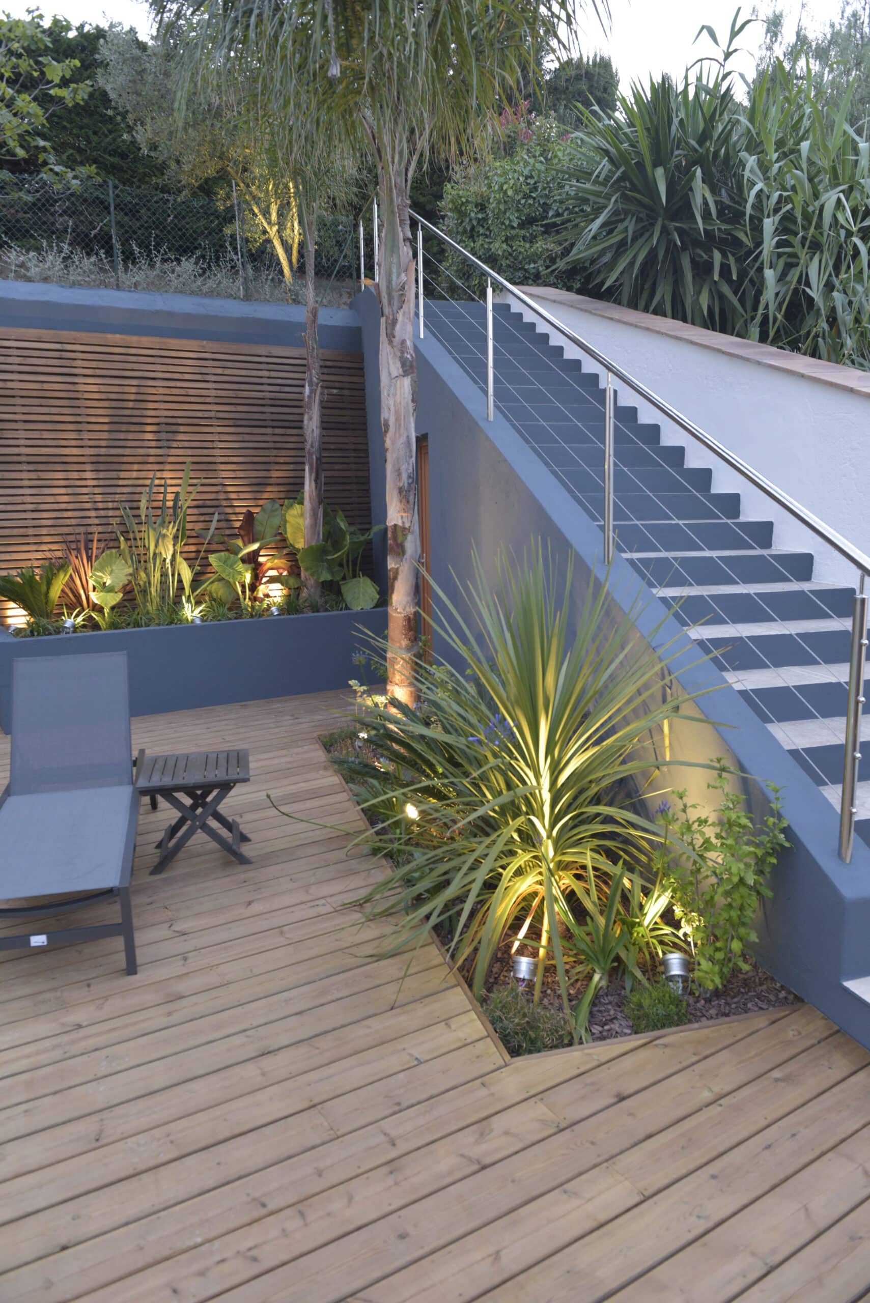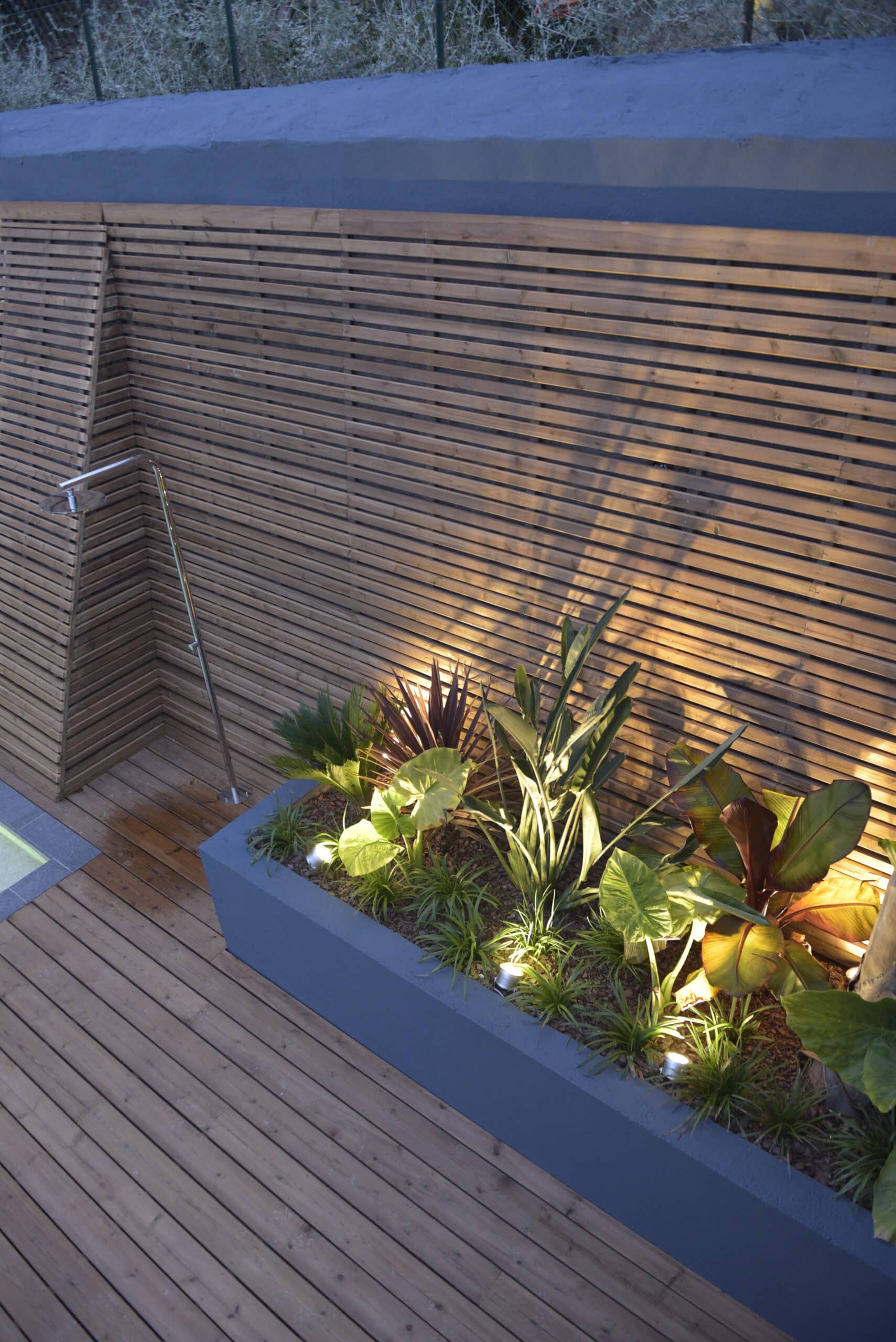 After renovating the house, the client wanted to create a cosy atmosphere around the pool and move the equipment room so that it could be easily accessed. The pool area had to be connected to the upper garden.