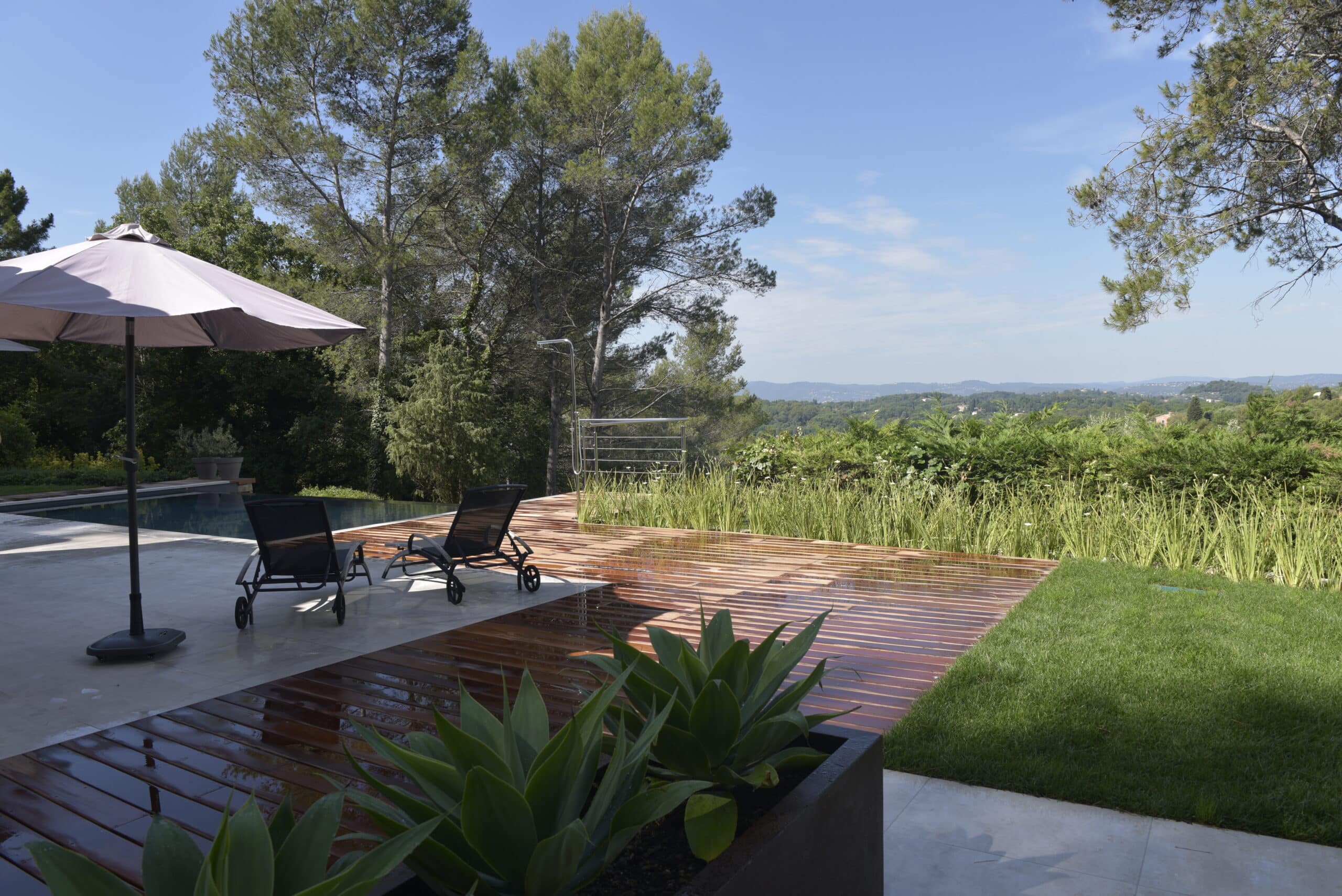 Havre de paix Localité Opio Surface 1200m² Mission Rénovation de jardin Le jardin a été totalement rénové afin d’agrandir l’espace de vie. Les lignes épurées et modernes du projet donnent de la grandeur au jardin et la perspective sur le paysage est mise en valeur. Précédente Suivante Fini Avant-Après