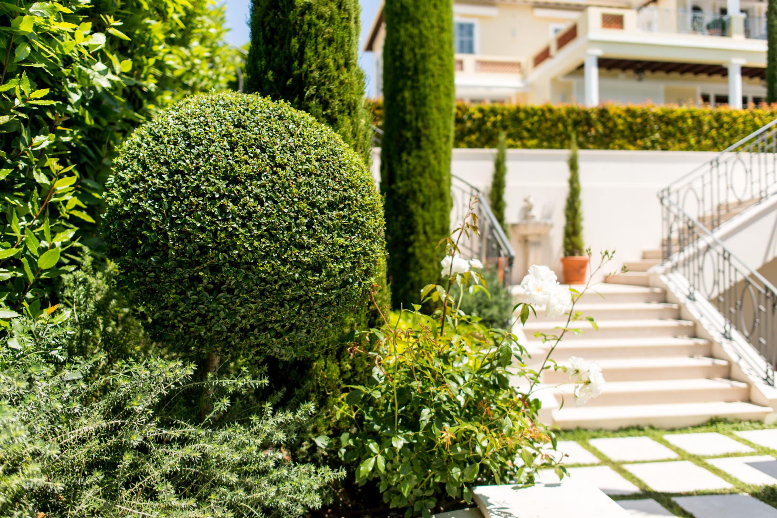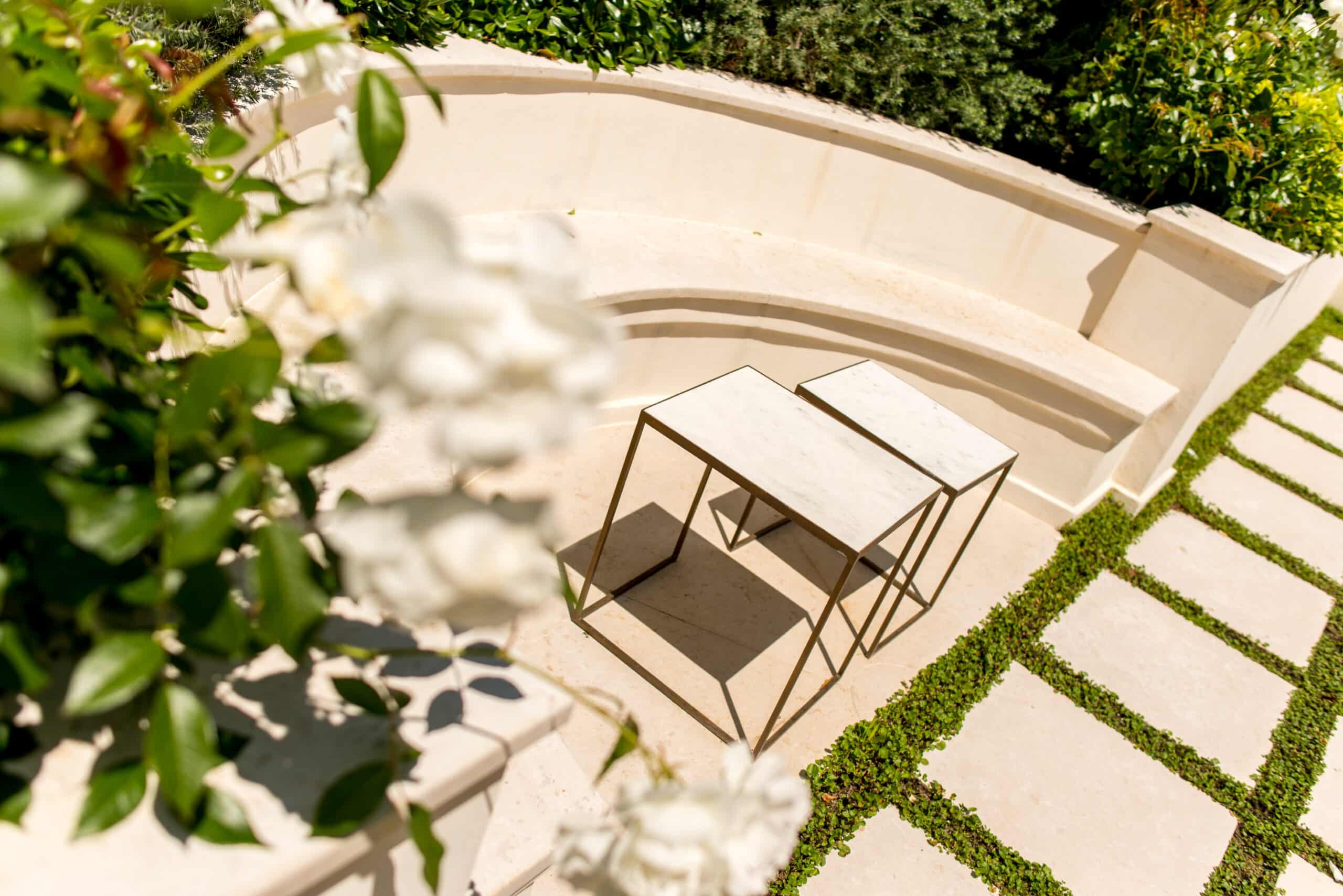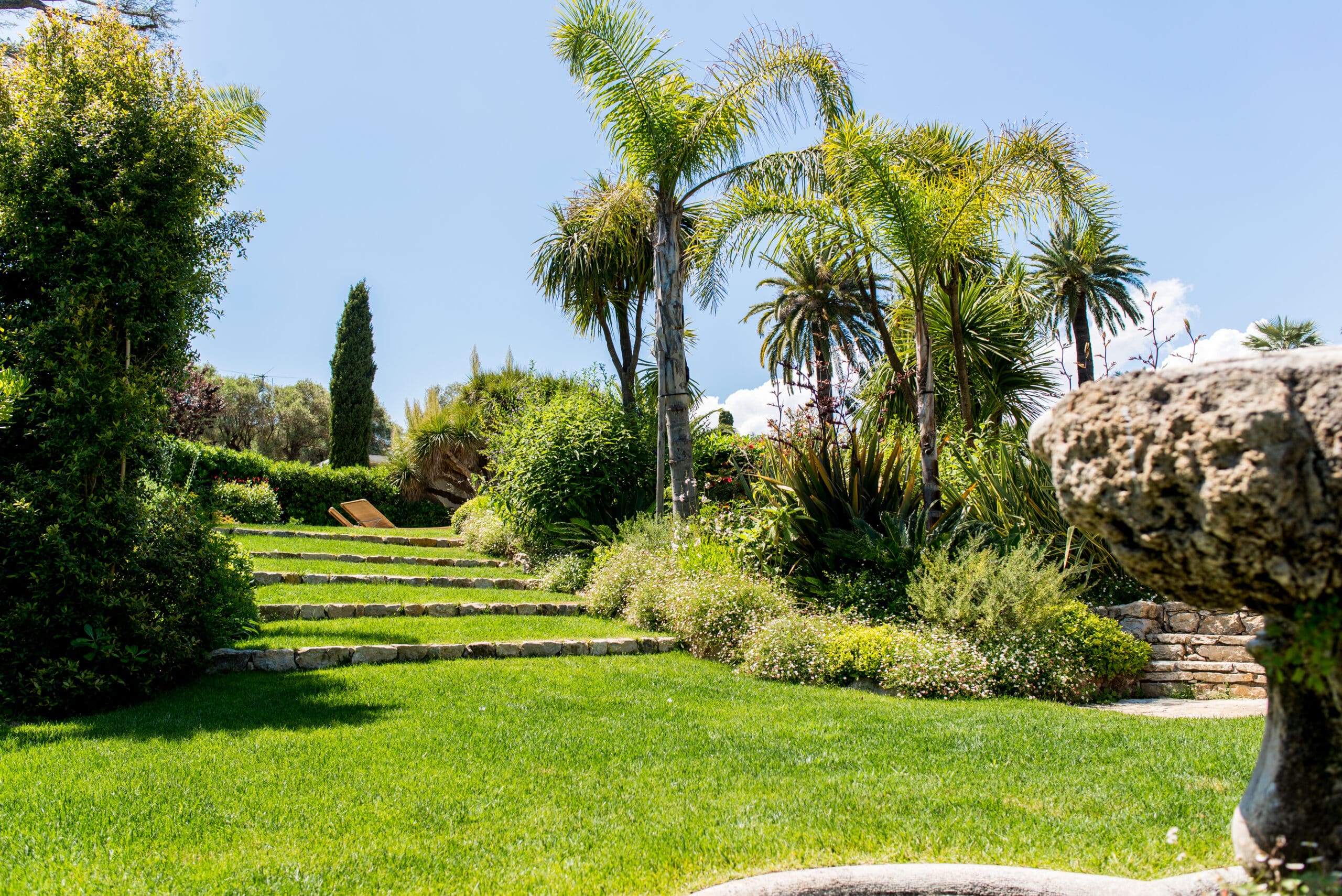 Dans cette propriété à la déclivité très importante, nous avons créé plusieurs espaces de vie dans un style florentin afin de mettre en valeur l’ancienne demeure entièrement rénovée. Fontaines, statues et autres éléments décoratifs en pierre ont été intégrés au projet.
